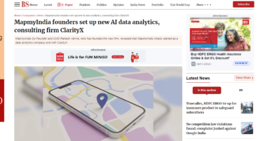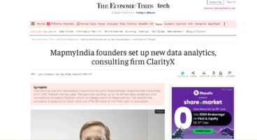 Economic Times: MapmyIndia founders set up new data analytics, consulting firm ClarityX