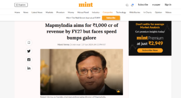 Live Mint: MapmyIndia aims for Rs1,000 cr. of revenue by FY27