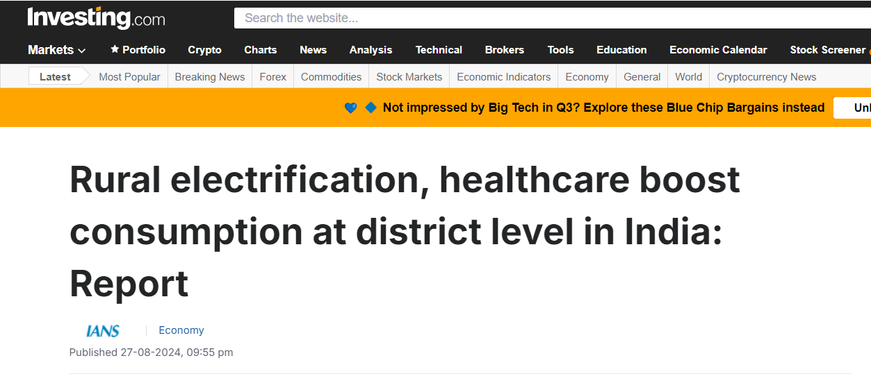 Investing.com: Rural electrification, healthcare boost consumption at district level in India: ClarityX’s DPI Report