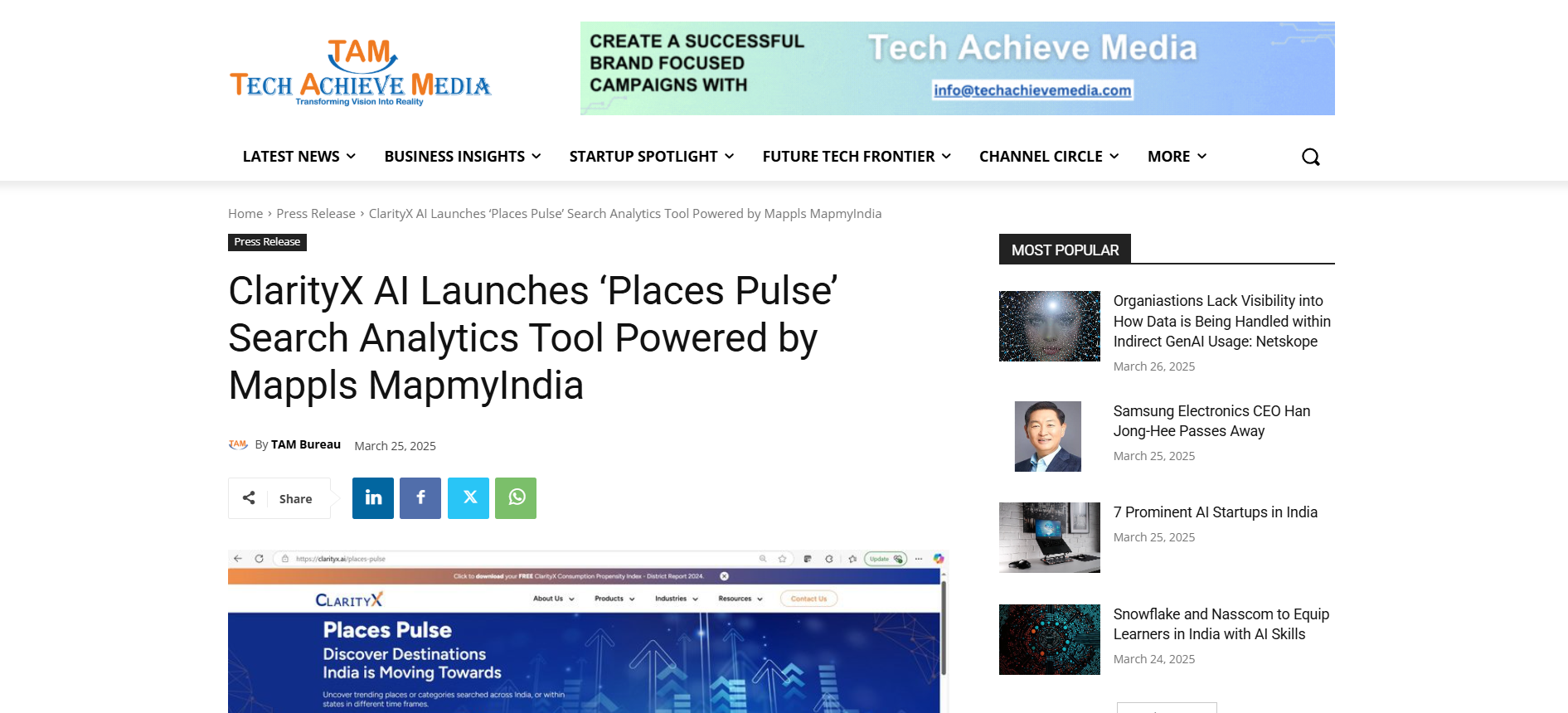 ClarityX, AI-driven data analytics and consulting firm backed by MapmyIndia founders, has unveiled “PLACES PULSE”, a search analytics tool that deciphers India’s movement trends across time periods.